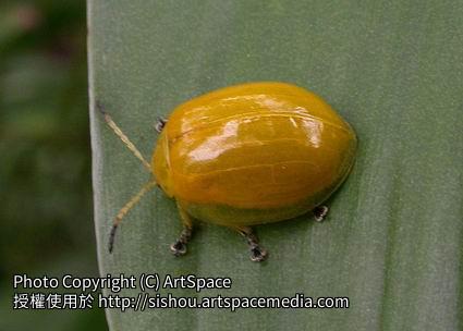 種類編號: SP-142主要觀察於象山,春季可見於步道旁植物葉片上。蟲體黃色在死亡後會快速消失轉趨透明。